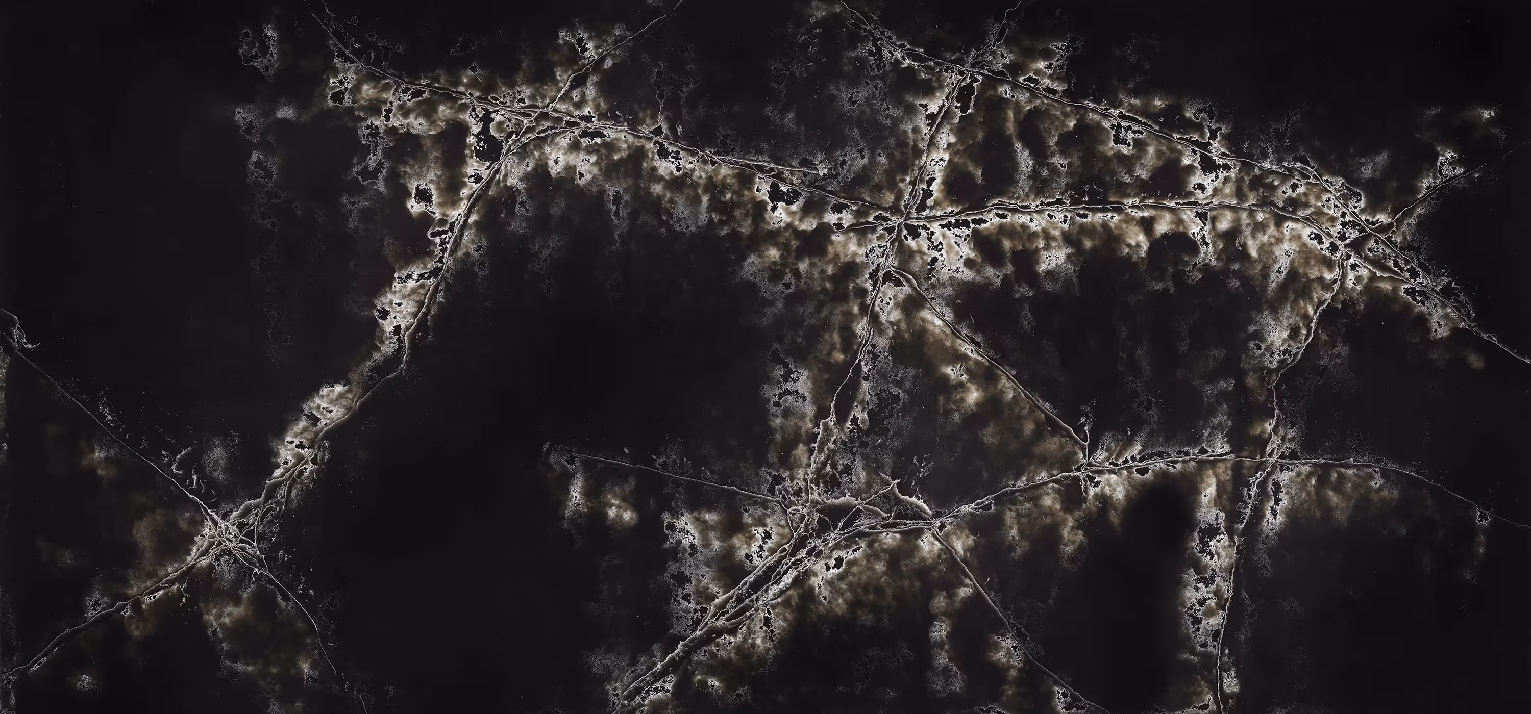 A rich and bold black quartz surface with subtle white veins.