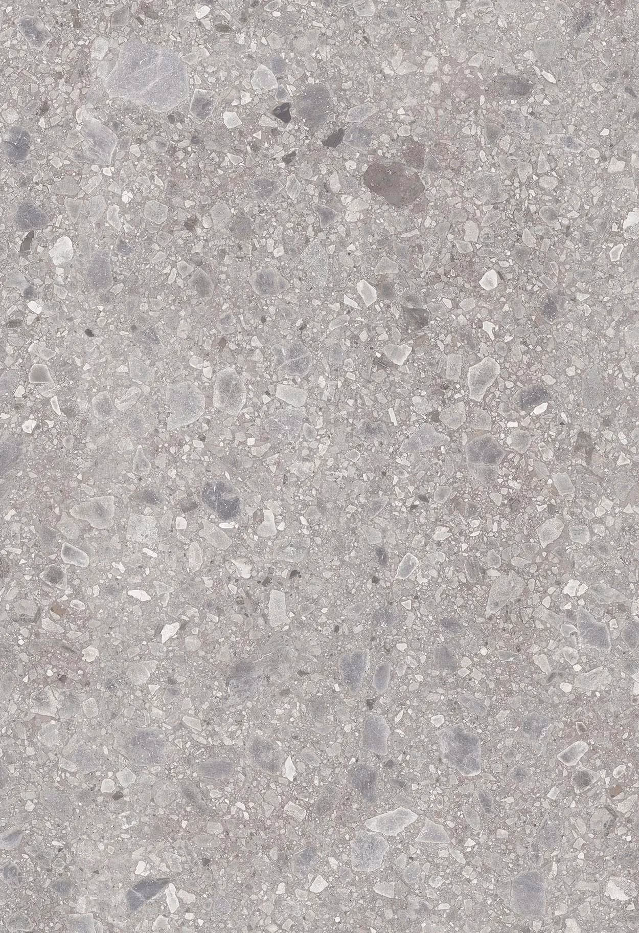 Inspired by the popular terrazzo trend, Terrazo Ceppo showcases gray tones with stones for character, some of which are digitally selected for a shiny touch. Full Body decoration slightly represents surface stone. Available in a Silk finish.