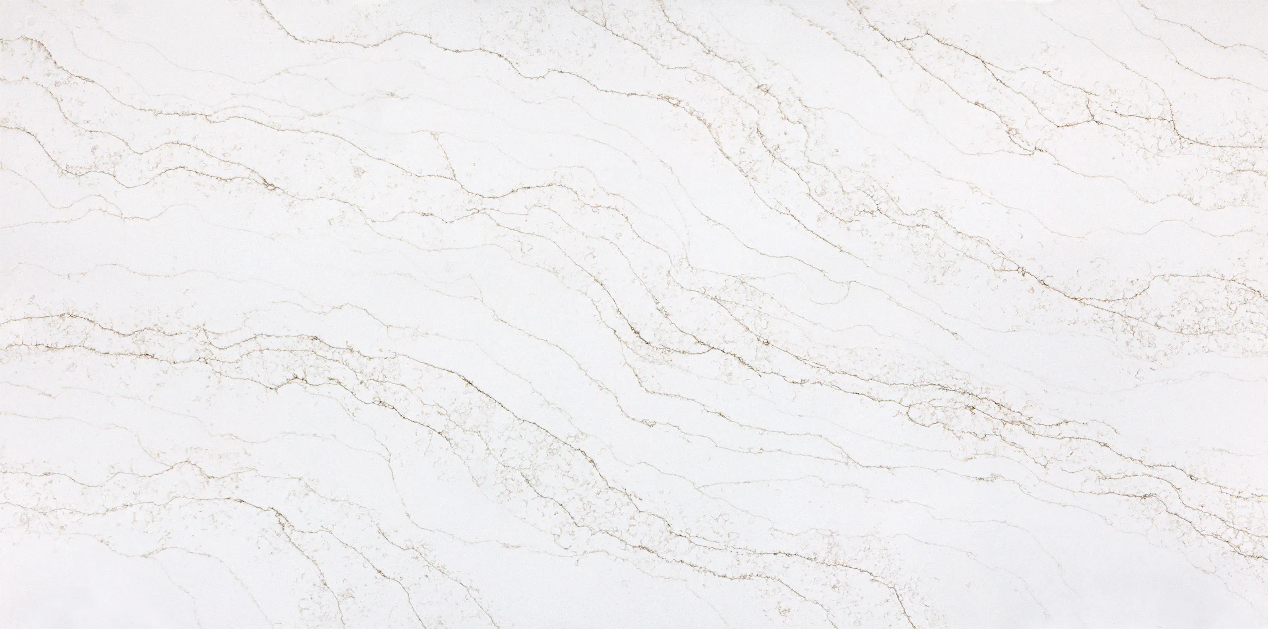 Marble-inspired quartz, featuring a white background with wispy taupe veining
