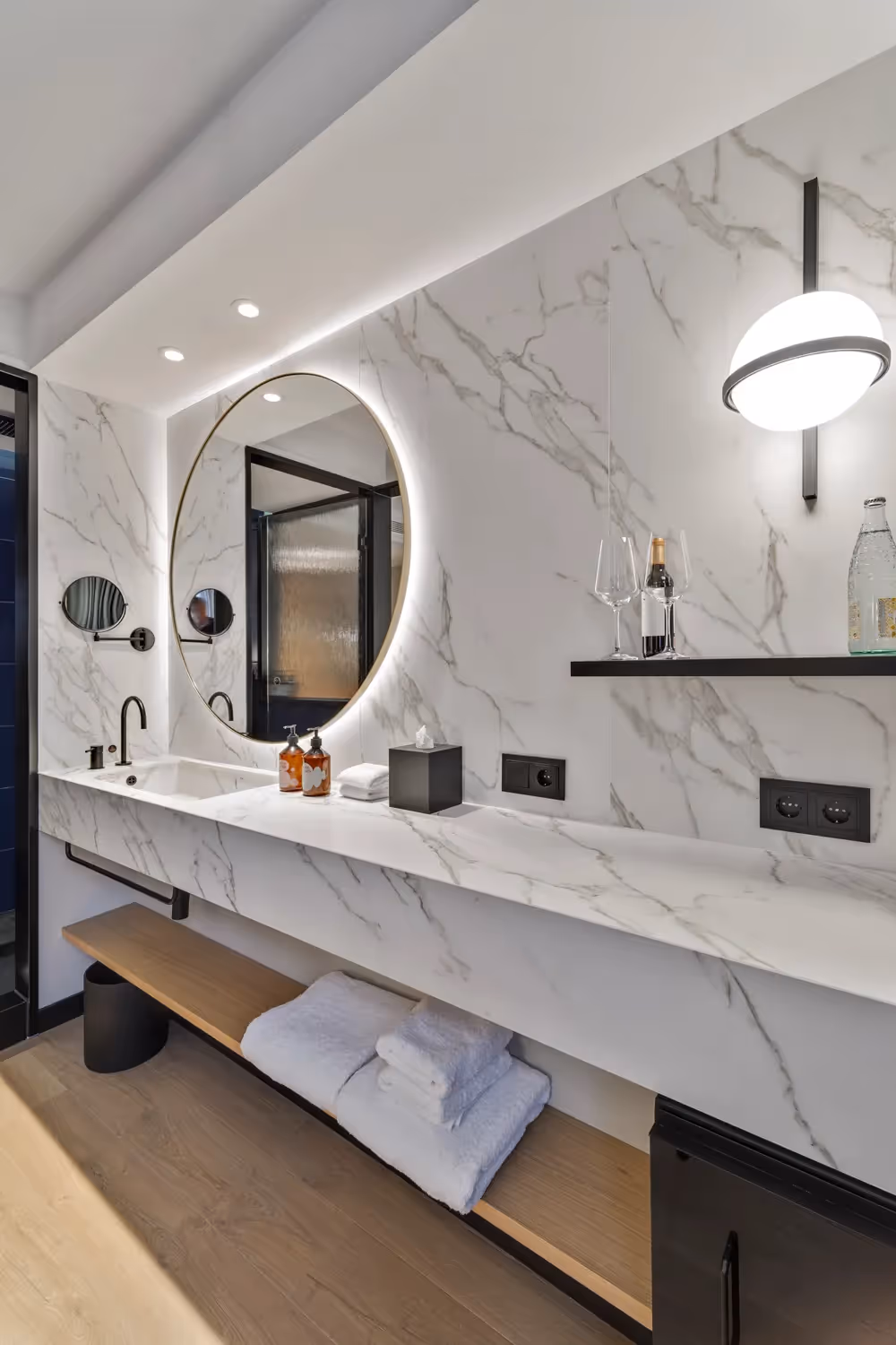 Bathroom surfaces are subject to daily wear and tear. Our cladding materials are highly scratch- and impact-resistant, ensuring your vanity tops and walls remain flawless for years.